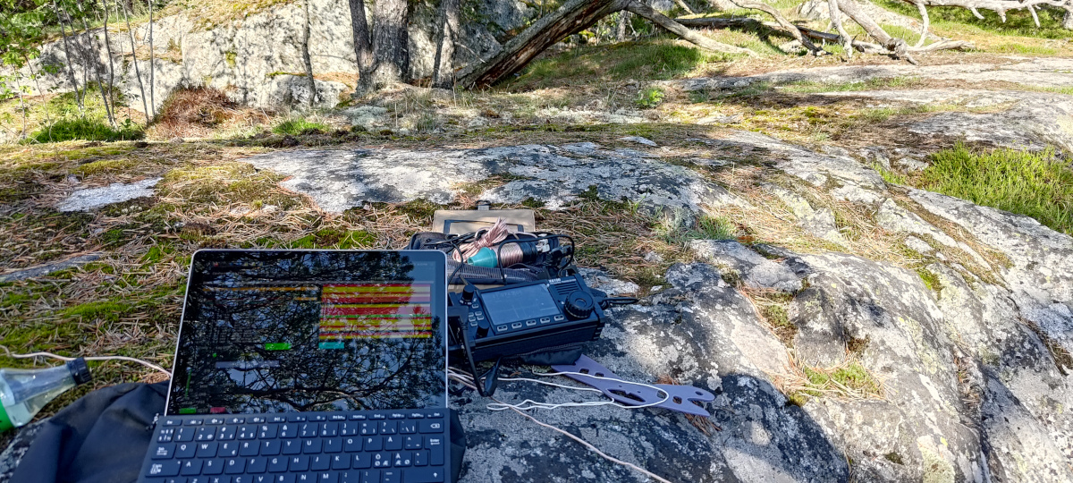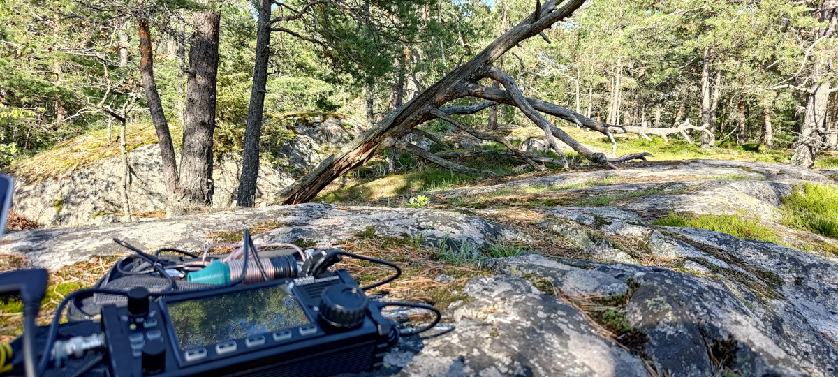 I quickly deployed in a super-sketchy setup a random wire antenna, and tuned on 15m, which appeared to be the best for that configuration, after a couple of rounds of CQ-ing with FT-8 and PSKReporter. 20m worked well too, but being one of busiest bands made it difficult to find a good spot and be heard with just 5W.
